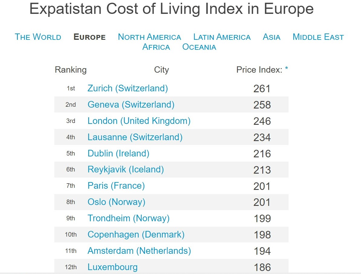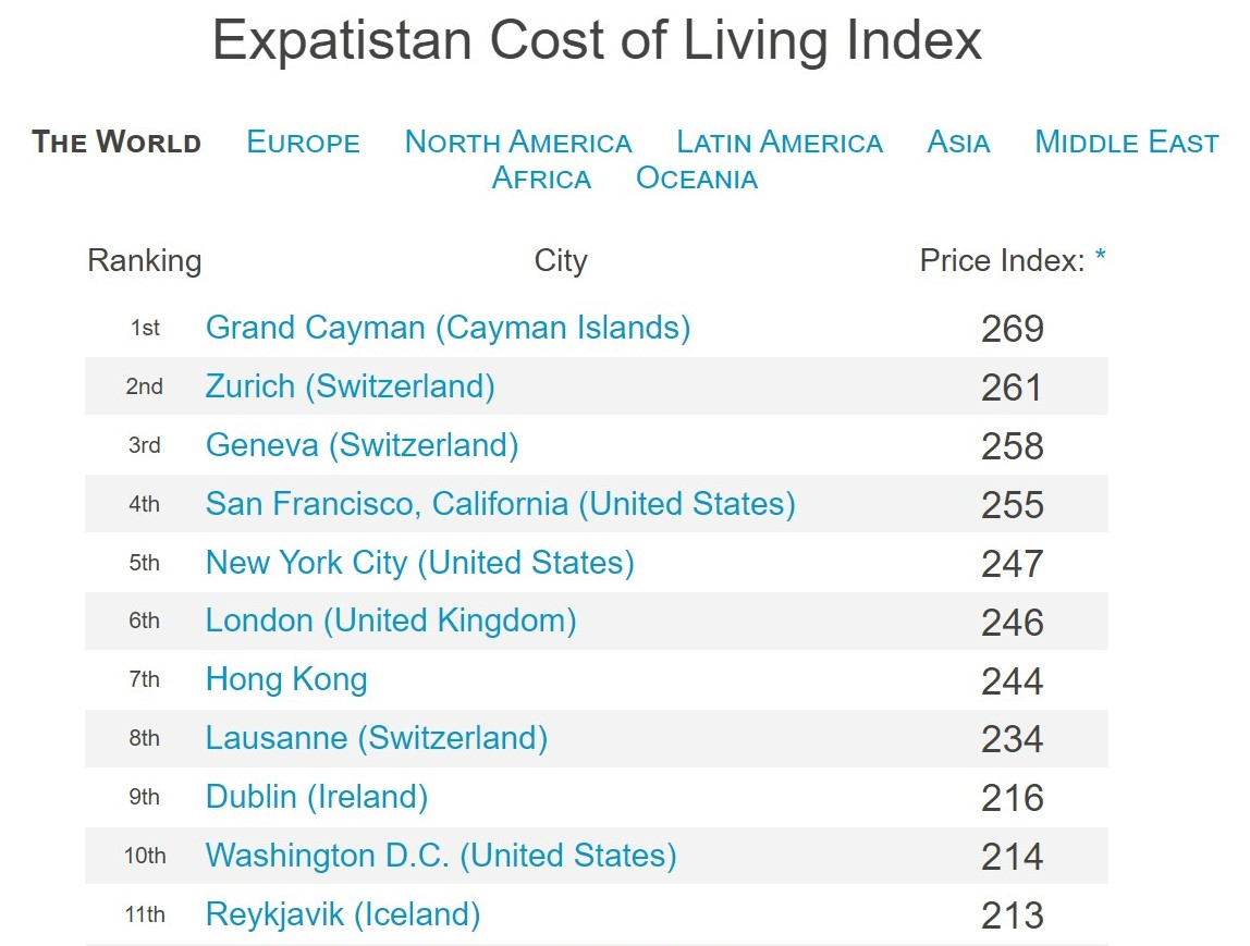 La nivel de țară cea mai scumpă viață în 2021 a fost în Insulele Cayman, Hong Kong, Elveția, Islanda, Singapore, Irlanda, Luxembourg, Noua Zeelandă, Norvegia și Israel, arată datele portalului.