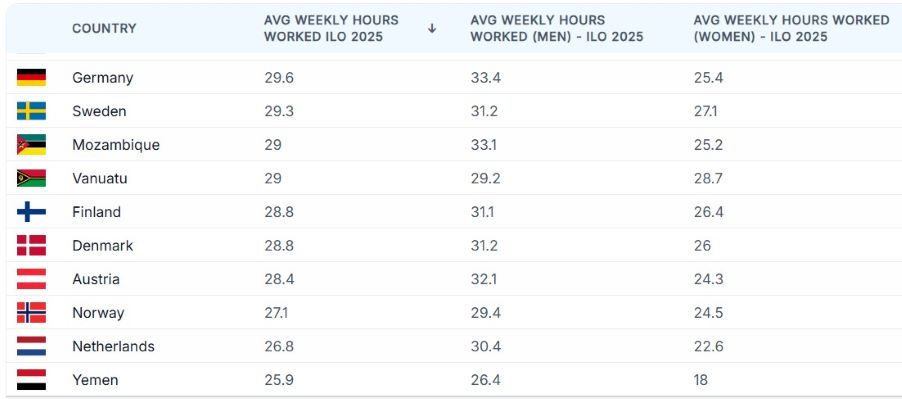 In 2025, the world’s workforce shows a stark divide between nations working long hours out of economic necessity and those where productivity and social protections allow for shorter workweeks. A new report says working harder does not automatically translate into bigger output.